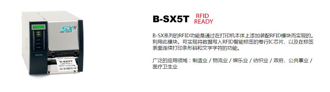 B-SX系列的RFID功能是通過在打印機(jī)本體上添加裝配RFID模塊而實(shí)現(xiàn)的,利用此模塊。可實(shí)現(xiàn)將數(shù)據(jù)寫入RFID智能標(biāo)簽的卷行IC芯片、以及在標(biāo)簽表面連續(xù)打印條形碼和文字字符的功能。